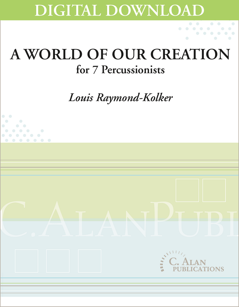 As dire as that may sound, A World of Our Creation is a call for creative solutions. In presenting some of the composer's favorite creative sounds (bowed vibes, steel pans, desk bells), his hope is to encourage a sense of continued activism, constantly searching for creative solutions to those issues that we know about, and those that are to come. The work is scored for 7 players on metallic instruments.