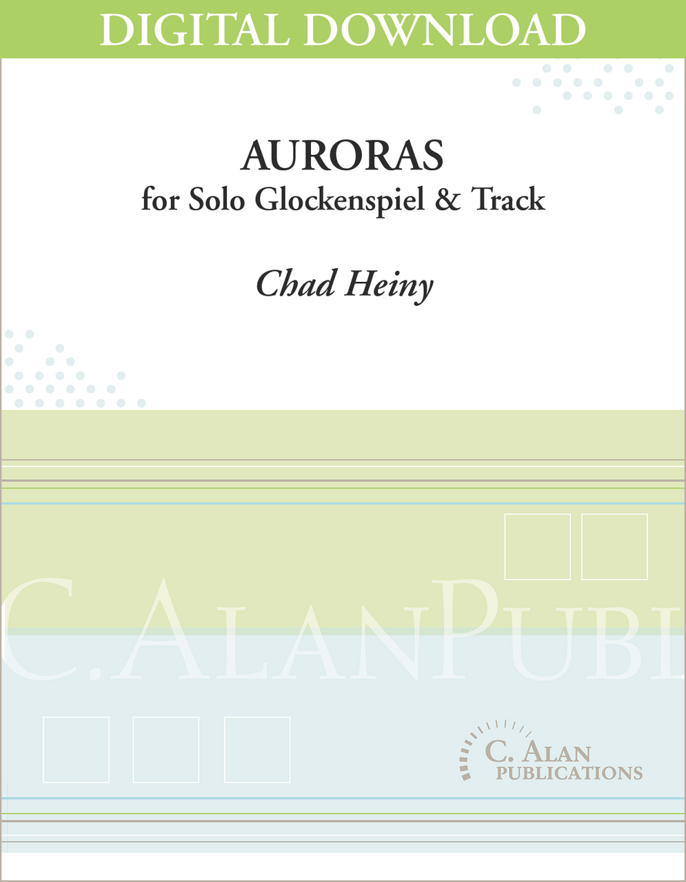 I’m always excited to hear new works by Chad Heiny. He has composed many exciting pieces, and this is a wonderful addition to his catalog of works. This beautiful work is split into five movements named for the colors seen in auroras. The first, second, and fourth movements require four mallets. Each movement has a different character, so access to a wide variety of glockenspiel mallets is recommended to find which will work best for each movement.