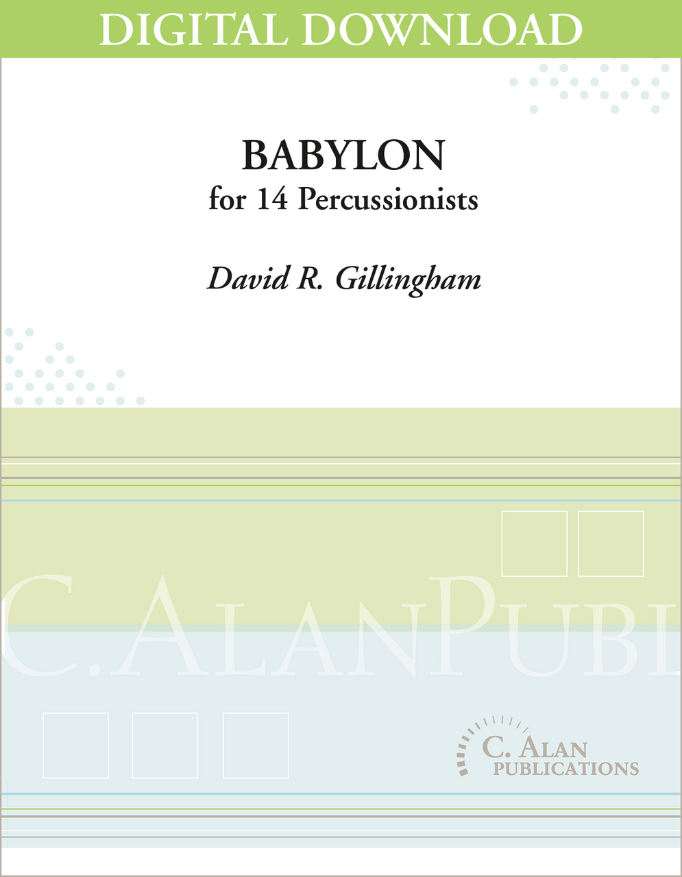 Commissioned by the Texas Christian University Percussion Orchestra (Brian A. West, conductor), Babylon is a programmatic work for percussion orchestra inspired by the story of “The Tower of Babel” from the chapter of Genesis of the Bible. Fittingly, this piece is released 25 years after the initial publication of Gillingham's seminal work, "Stained Glass."