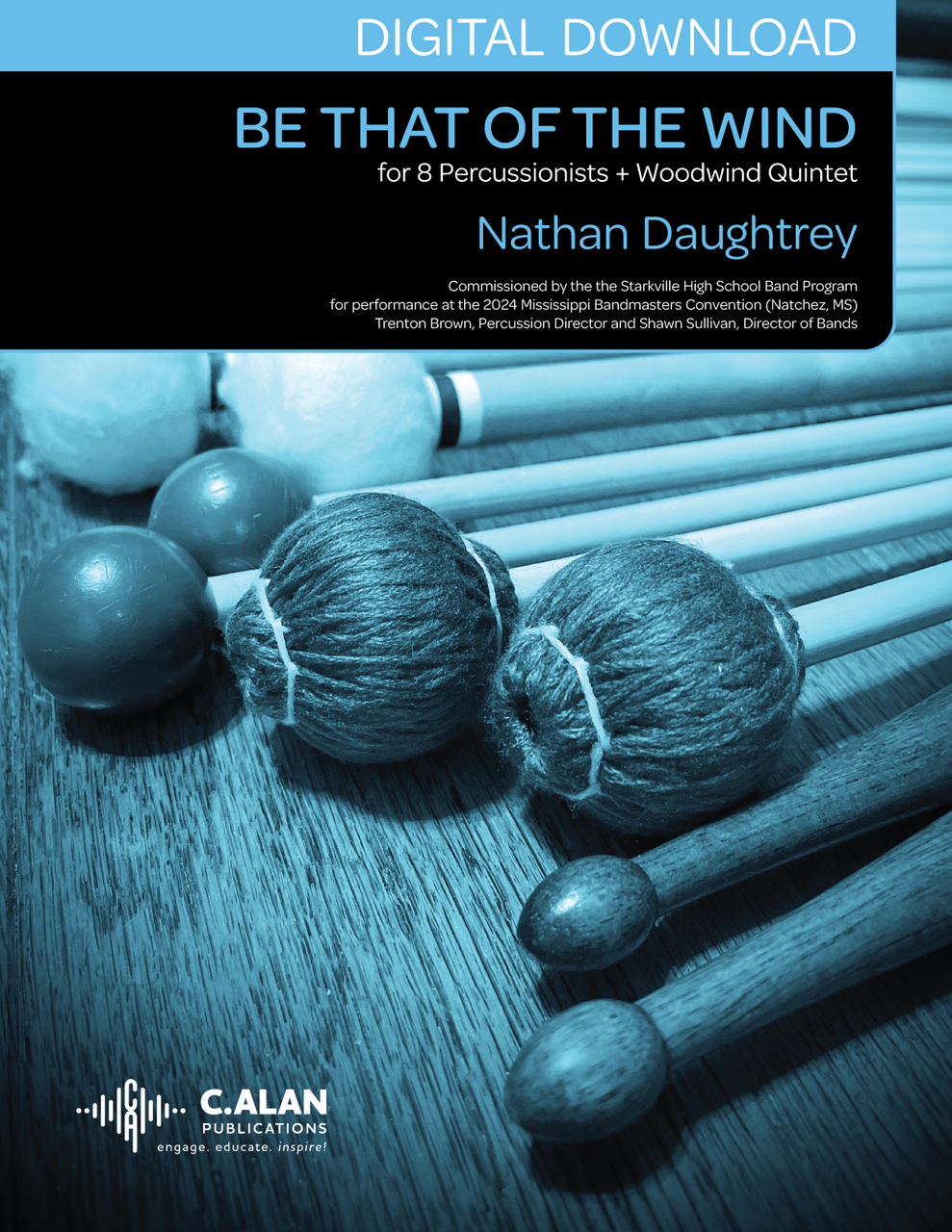 Be That of the Wind was commissioned by the the Starkville High School Band Program for performance at the 2024 Mississippi Bandmasters Convention (Natchez, MS), Trenton Brown, Percussion Director and Shawn Sullivan, Director of Bands.