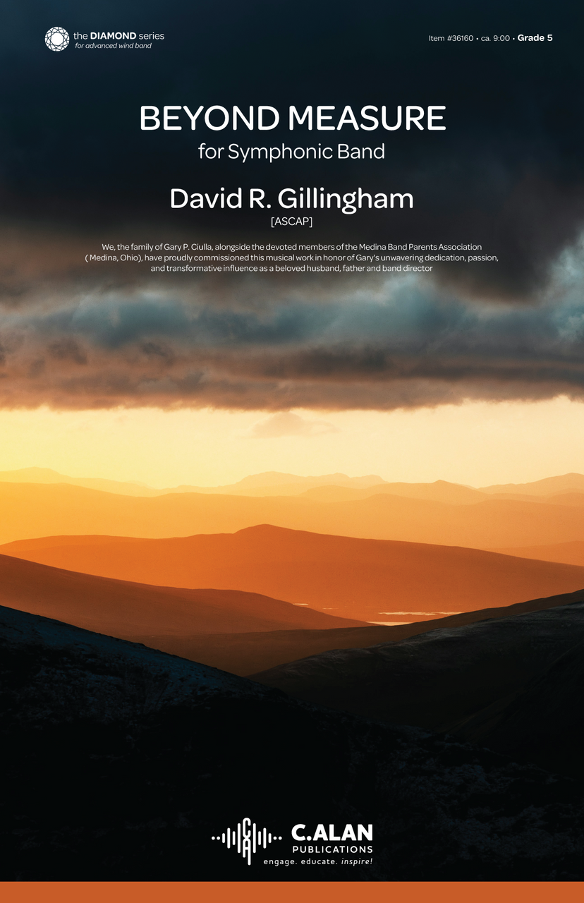 Beyond Measure was commissioned by the Ciulla family and the Medina Band Parents Association in honor of Gary P. Ciulla who passed away on August 31, 2018. Gary was the Director of Bands at Medina High School, Medina, Ohio, for over forty years and became an icon of that community. Over those forty some years, he built and maintained a top level band program and was a beloved citizen of Medina. His positive influence on countless students, faculty and friends is truly "beyond measure."