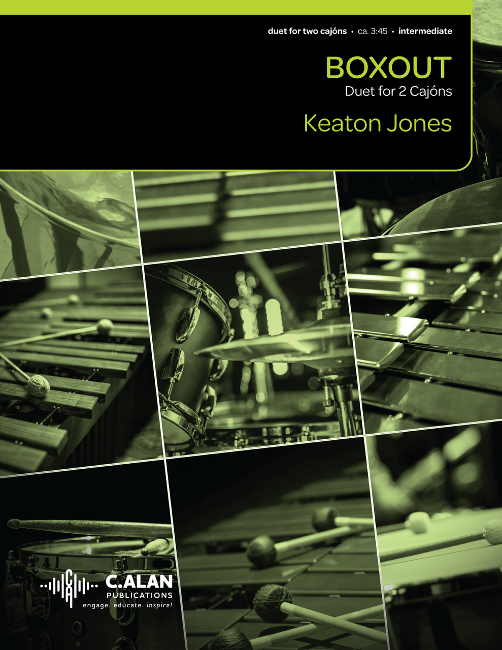 Boxout was created from ideas that stemmed while playing cajón as a street performer in Gatlinburg, TN. The cajón is known as a support instrument, used mostly as an alternative for drum set. Between the rich history and diversity of the cajón, it inspired me to explore what music could be made with it as a solo instrument, or in this case, a duet. The opening four-note motif is the basis of the composition, first appearing in 4/4 time, and then later in 3/4 and 12/8. Boxout