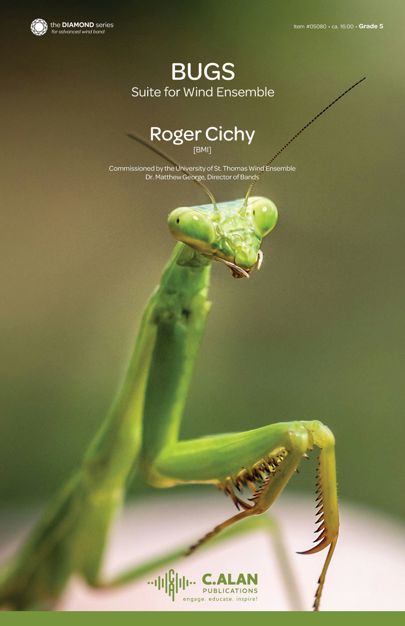 With the success of Colours, a work in which each movement is a depiction of a particular color, composer Roger Cichy began considering other "topics" of the sort for ideas that might transpire into future musical compositions. Bugs came to mind... and the thought of giving a "musical personality" to the selected bugs seemed humorous, inventive, and capricious all at the same time. The insect and spider collection at the Fields Museum of Natural History in Chicago provided inspiration, and at the same time, made it difficult for Cichy to narrow down the list. The particular bugs represented in this suite were chosen partly because of the contrasting style of music that would be composed for each.