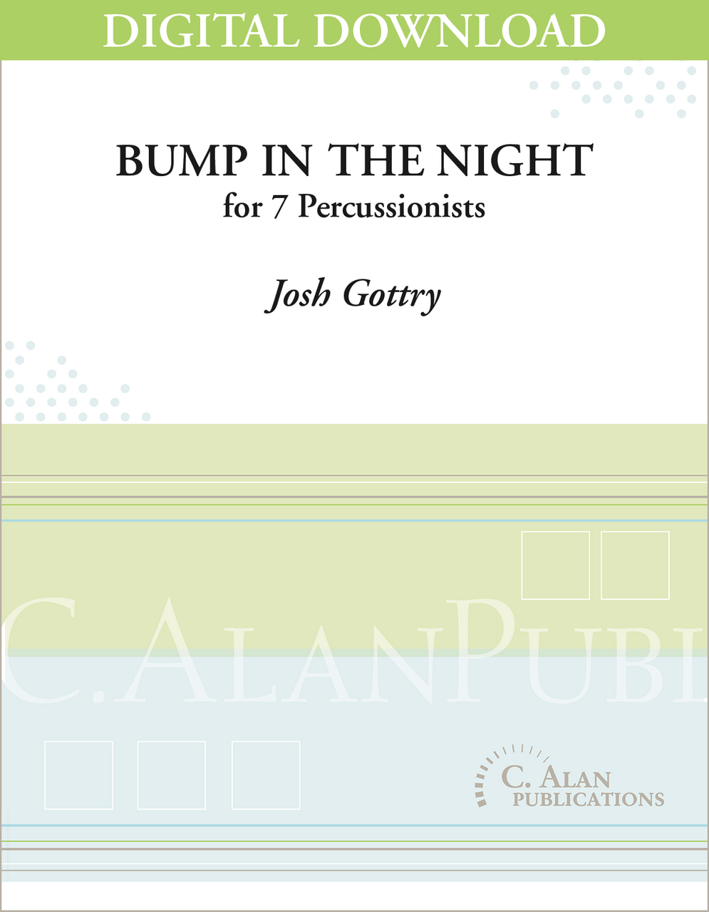 Doing less with more, Bump in the Night utilizes common non-pitched percussion instruments, including drums and percussion accessories, in ensemble for 7-11 players that is derived entirely from only three unique measures of music per part. Explore not so common meters (5/4 and 7/8), creative orchestration, and a wide variety of ensemble textures, layers, and dialogs in this engaging and pedagogical work for younger percussion ensembles.