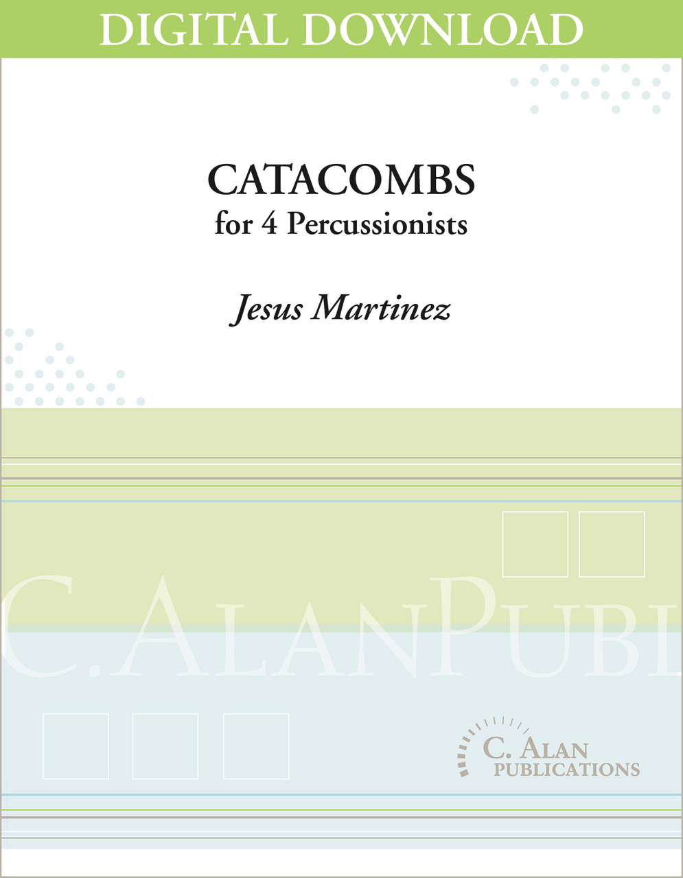 Catacombs are defined as a human made system of underground tombs that was originally referred to the tombs of the Appian Way in Rome. This piece was inspired by the journey between the 2nd and 3rd milestones of the Appian Way, where it is said that the bodies of the apostles Peter and Paul had been buried. The journey ventures into the deep catacombs in search of knowledge and treasure. The theme portrays the lust for treasure and power and goes through a number of different rhythmic variations to portray the exciting and dangerous journey. Percussion 1 ventures through both wooden and metallic sounds as it is the leading role throughout the piece. As the piece goes through the exposition, Percussion 4 uses a combination of yarn and slap mallets to portray the shock and multiple sounds that are heard through the underground passages. The piece then goes into a small development and ventures into abstract and augmented chords that differentiates and alleviates the dissonance from the exposition. When the piece reaches the recapitulation, the use of the first ostinato pattern is embellished through an array of multiple rhythms between the four marimbas to create straight 16th notes across the measures. The piece then peaks with unison hits to create tension as it finally transitions into a pattern of 16th notes as every instrument plays the theme at different times to create a single melodic line. This climax then transitions back into the first A section of the piece as it ends almost the same way it began.