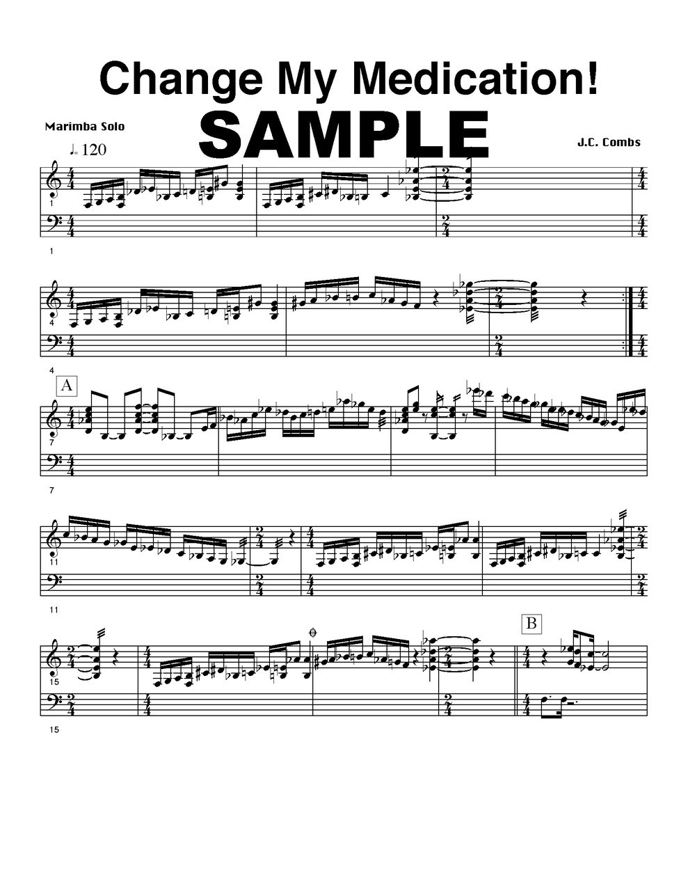 Change My Medicationis a fun 4-mallet piece inspired by the music of Thelonius Monk that flirts with the octatonic scale. There are opportunities for improvisation throughout the piece.