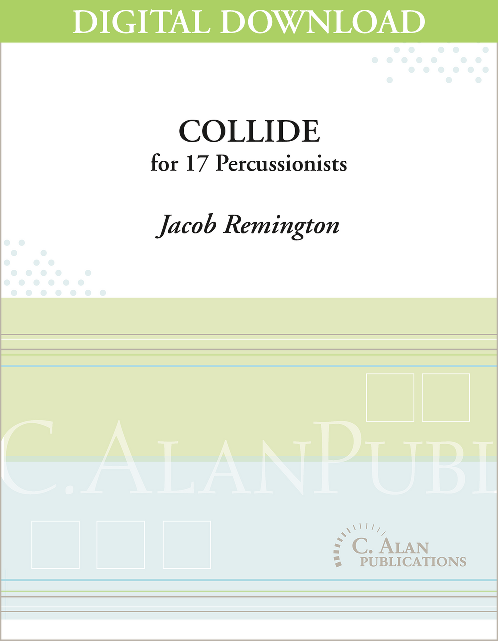 Collide was commissioned by Dr. Brian A West and the Texas Christian University Percussion Orchestra in June of 2015 for performance at the 2015 Percussive Arts Society International Convention in San Antonio. The piece was written to depict the process of searching for new subatomic particles (often referred to as “dark matter” or “anti-matter”) at the Large Hadron Collider (LHC) developed by CERN in Switzerland. At 17 miles in circumference, the LHC is the largest sub-atomic particle accelerator in the world, and was built to replicate (on a microscopic scale) the conditions of the universe immediately following the Big Bang. At the beginning of the piece, an alarm goes off as the system is turned on and thousands of particles are slowly fed into the machine going opposite directions, represented by the relentlessly repetitive 16th note patterns in the keyboards. Once all of the particles have been added, ultra-high intensity magnetic fields send pulses at regular intervals to accelerate the particles, which is depicted by the repeating half notes in the low octaves of the marimbas. The particles gradually become faster until they reach 99.99% the speed of light and begin to resemble a solid beam as they travel around the 17- mile loop at 11,000 times per second. At this point, the magnetic pulses can no longer increase the velocity of the particles. The added energy shifts to increasing the mass of the particles until they become 25 times heavier than when at rest. This is represented musically by a metric change to a slower and more robust feel of 12/8, as well as a tonal shift to heavier drum sounds with longer melodic lines in the keyboards. Once the particles have reached their top speed and highest density, the two sets are gradually directed towards each other so that the particles crash into one another. This produces the most intense collisions ever created by man, and sends the newly-found particles shooting off in unpredictable directions. The music reflects these collisions with unpredictable rhythmic patterns and metric changes that are highly energetic and powerful. The melodic theme from the beginning returns as the piece comes to a close. However, certain melodic and rhythmic patterns are disjunct and broken this time, as the particles have changed their form. The piece ends with the machine being powered down, as scientists begin to contemplate the origins of the universe.
