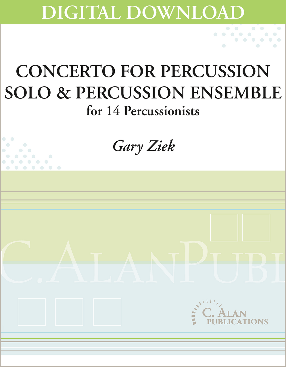 Concerto for Percussion Solo was composed in January of 2001 as a showcase for the talents of percussionist Scott Herring. The concerto is in three connected movements and features the soloist on a variety of instruments, including marimba, vibraphone, bells, and crotales. A large percussion battery with two snare drums, multiple toms, brake drums, and bass drum is also used. The first movement, March, utilizes a quasi five-part rondo form. The movement starts with a solo snare drum, with the ensemble providing melodic interjections. The introduction builds to the first solo marimba entrance. A left hand ostinato leads to a melodic figure which alternates between six-eight and common time. A short snare drum solo sets up the middle section, in which the soloist and ensemble trade musical ideas. The multi-meter passage returns, with the soloist embellishing ensemble melodic figures. An abrupt modulation leads to the final section, which echoes the opening ideas of the movement. March ends with the soloist back on the snare drum, as it comes quietly to its conclusion. The concerto immediately segues into the second movement, Meditation, which begins with the ethereal sound of multiple sets of wind chimes. As the movement progresses, the soloist plays long, reflective lines over a simple accompaniment, on various combinations of keyboard percussion instruments. The movement builds to a moment of triumph, before returning to its initial contemplative state. Fantasia (a free flight of fantasy) immediately shatters the previous mood. A loud, cacophonous accompaniment provides a charged atmosphere for the soloist to utilize the percussion battery. A short melodic section, noble in character, leads to the initial climax of the final movement. The atmosphere abruptly changes again, as the ensemble and soloist embark upon a fast, violent new section. Musical lines are furiously exchanged, leading up to a thunderous percussive display. The mood is suddenly tinged with blues and jazz influences, letting the soloist function in a manner reminiscent of a drum set player. The final section of Fantasia begins with a unaccompanied marimba solo, played at breakneck speed. The ensemble begins to gradually join the soloist, as the movement builds to a final, fortissimo climax.