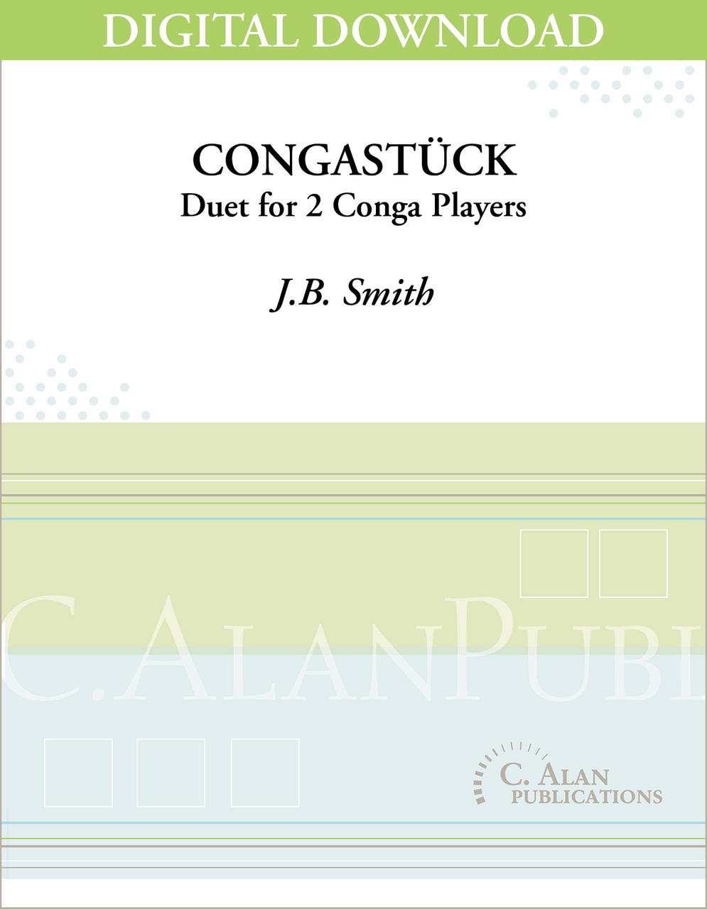 J.B. Smith is one of the first to notate conga playing in this duet for two conga players. Very clear diagrams and illustrations aid even the most inexperienced conga player. Each player uses three congas (quinto, tumba, and high or low conga) and ankle bells. The piece is set completely in 12/8 and provides opportunities for improvisation.