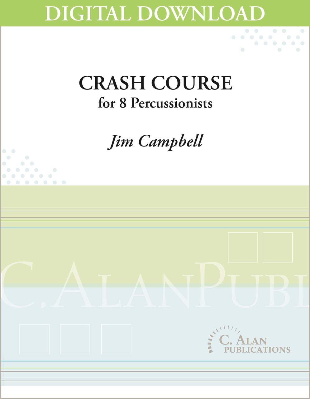 Inspired by cymbal lines in marching band and the performance ensemble Stomp, Crash Course is a theatrical piece for 8 crash cymbal players. Audiences will love the choreography that you may tailor for your performance space.