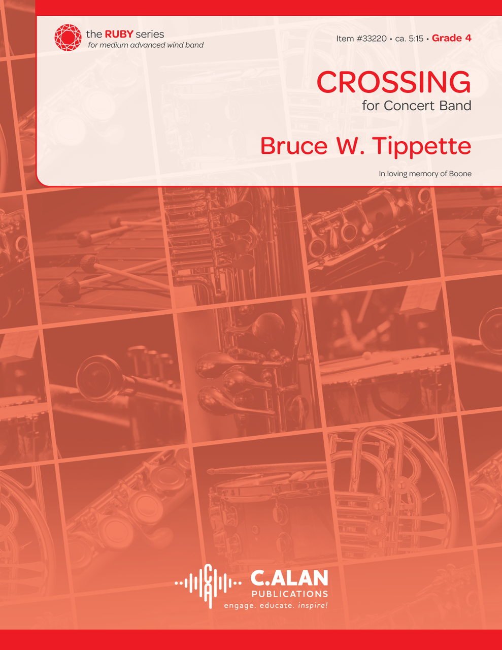 When my wife and I first got married, we got our first dog, a yellow lab puppy. During the life of this dog, Boone, we also acquired two more dogs and an outdoor cat. In the last few years of Boone’s life, the other two dogs and cat passed away, but Boone continued to keep on going! In December of 2021, it was finally time to let him go. There's a saying about animals that once they pass away, they're crossing the Rainbow Bridge, and that's how they find their owners again in the afterlife. The place on the other side of the Rainbow Bridge is a wonderful, peaceful place. When we were saying goodbye to Boone, I had this melody enter my mind (which is expressed in the oboe in this piece). I dedicate Crossing to our sweet yellow lab, Boone, in his memory.