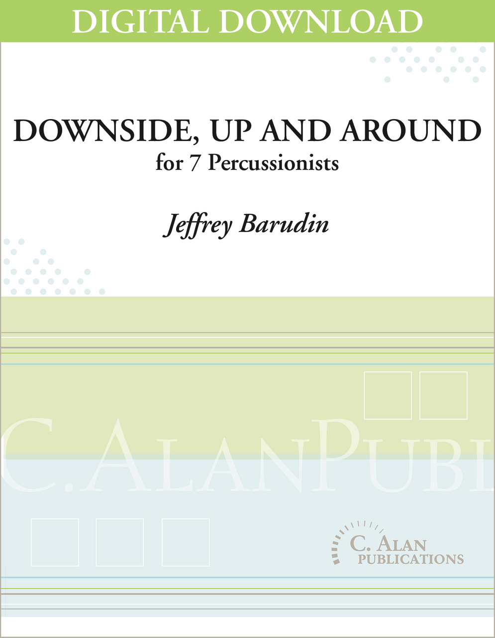 Downside, Up and Around is the first in my "Singular Series", a collection of percussion ensemble works that feature limited instrumentation. "The Singular Series" explores the range of textures and timbres made possible by simple set-ups. The piece features two snare drum soloists accompanied by five percussionists. It is influenced by techno music, which focuses on long-scale ostinati with gradual changes in texture. This piece shares that characteristic, allowing students to really get into the pocket of a groove. Pedagogically, performers can work on maintaining tempo and energy, sustaining focus, and promoting ensemble balance.
