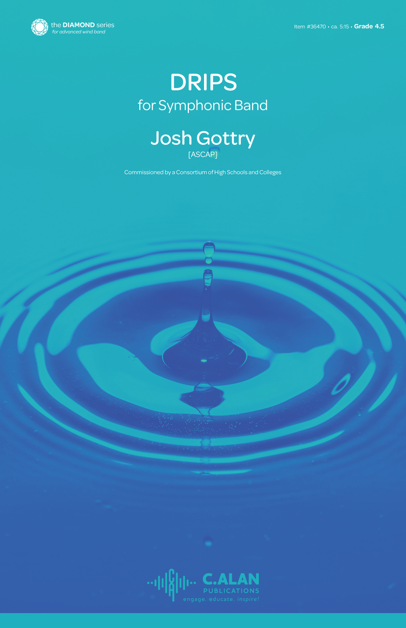 Originally written as a section feature for 10 percussionists, Drips is an exciting work for wind ensemble with creative use of percussion textures and melodic development through fragmentation of musical ideas.