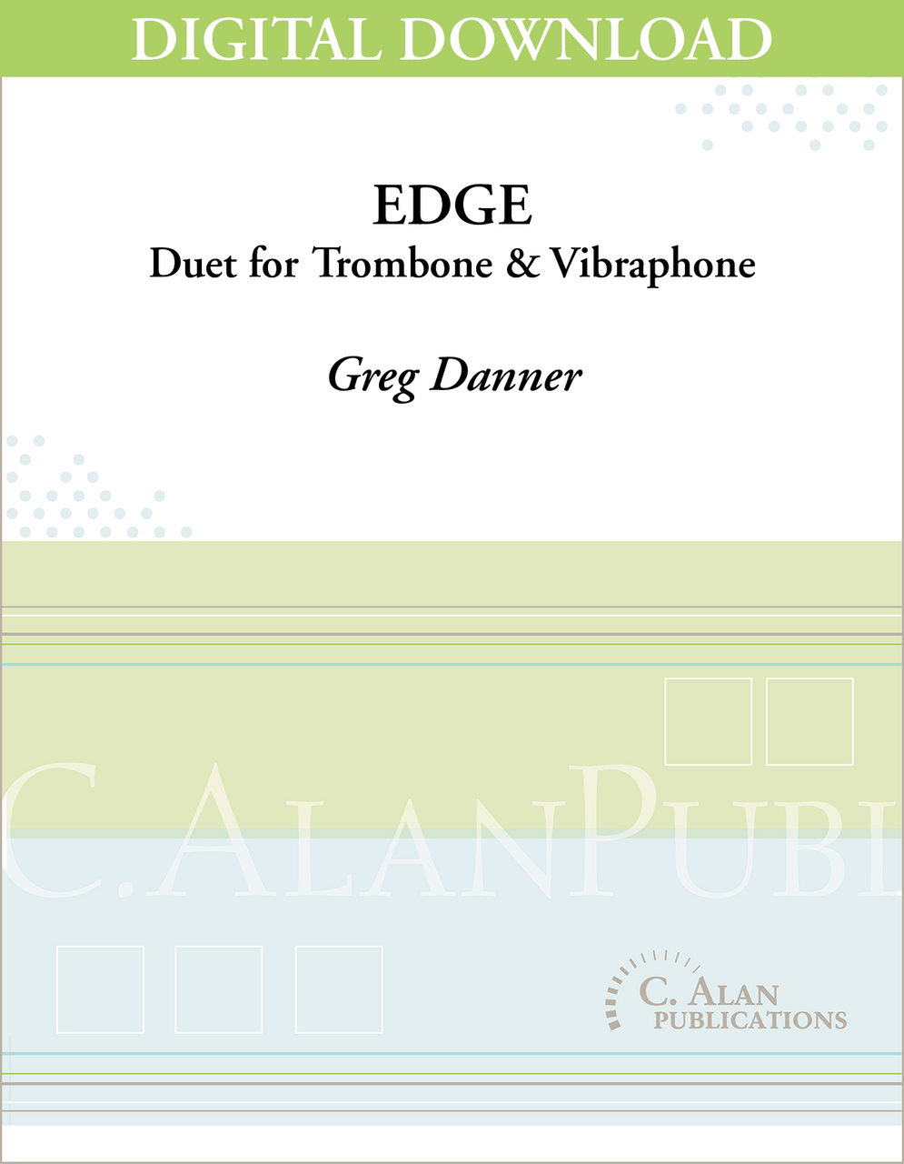 Edge was written for trombonist Joshua Hauser and percussionist Eric Willie. The outer movements feature spirited interplay between the instruments, and the middle movement is a lyrical duet. The piece explores many coloristic devices, including vocal effects for the trombone and bowing and harmonics for the vibraphone.