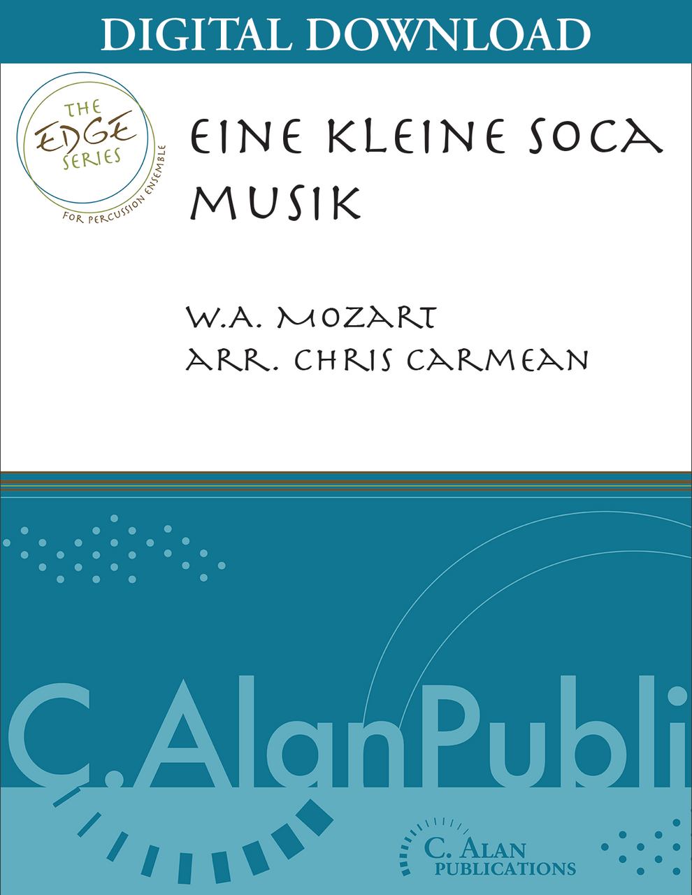 Eine Kleine Soca Musik ("A Little Soca Music") is a Trinidad twist on Mozart's classic Eine Kleine Nachtmusik ("A Little Night Music"). Using instruments commonly found in most school band rooms, Eine Kleine Soca Musik provides an opportunity for students to learn about soca (soul+calypso), a traditional style of music emanating from Trinidad and Tobago. Flexible instrumentation and optional parts allow performance by different numbers of players to suit your needs. The piece also presents an opportunity for students to work on concert percussion playing, including triangle, tambourine, woodblock, and mark tree, and also to learn about Mozart, the Classical period, string quartets, and even form and modulation in musical composition. With an apparent inability to decide whether to be a soca or classical percussion ensemble, Eine Kleine Soca Musik is sure to entertain your audience, make them get up and dance, and then be embarrassed when the music suddenly changes!