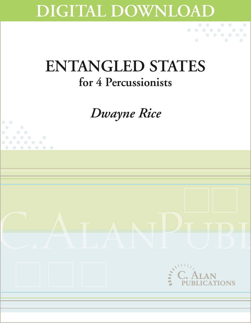 Entangled States is a concertino for multi-percussion soloist and percussion trio. Using the concepts of quantum entanglement, the materials of music, and various percussion instruments, Entangled States is a study in the nature of interaction. Each percussionist has instruments of a single family (metal, wood, or membrane), while the soloist has a mix of them all, and then some.