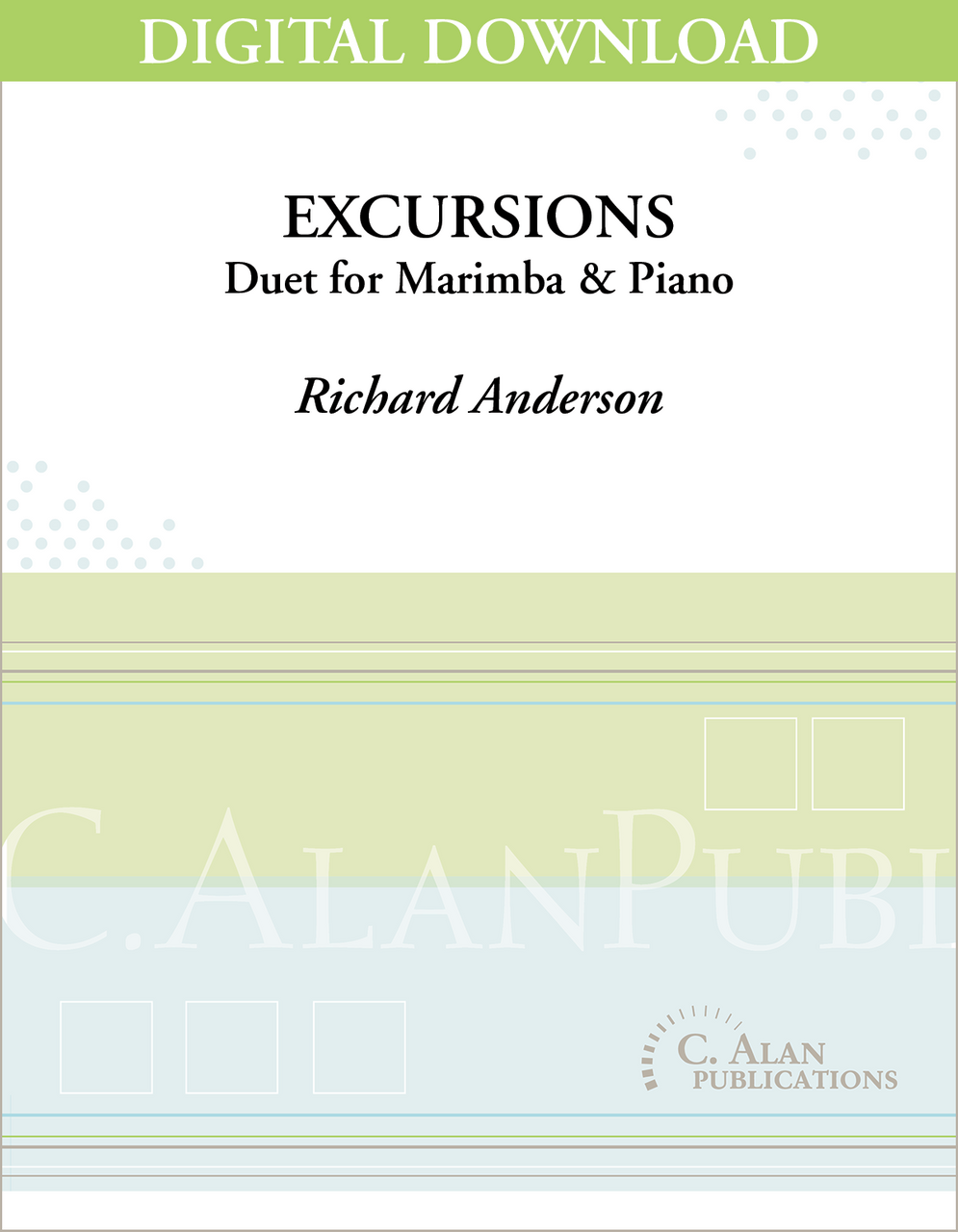 This work for marimba and piano begins with a high energy duet that puts the players on equal footing. Only two mallets are needed. The second movement is a moving chorale like feature for four mallets while the third movement returns to the fast paced two mallet style with tons of exciting rhythmic motives.