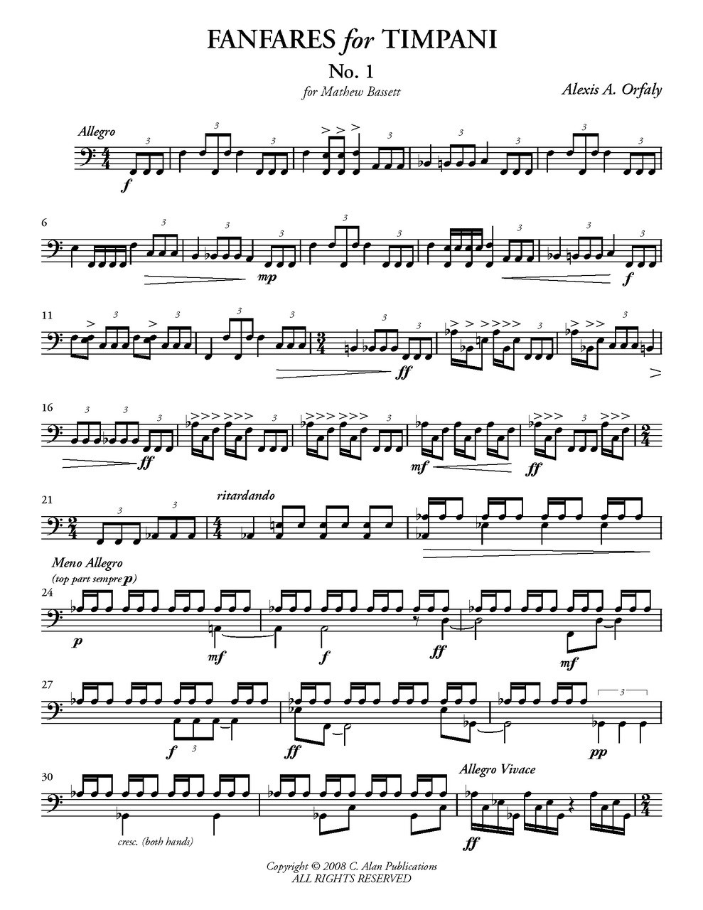 Plenty of tuning in the midst of bombastic performing make this timpani solo a challenge for the experienced timpanist.