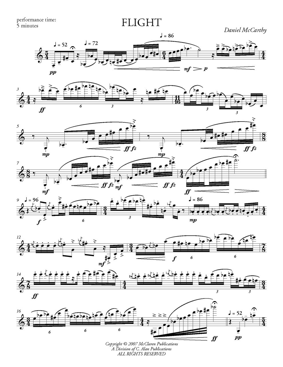 A modern solo for B-flat Clarinet that recreates the sounds of flight with soaring lines and fast, rhythmic runs.