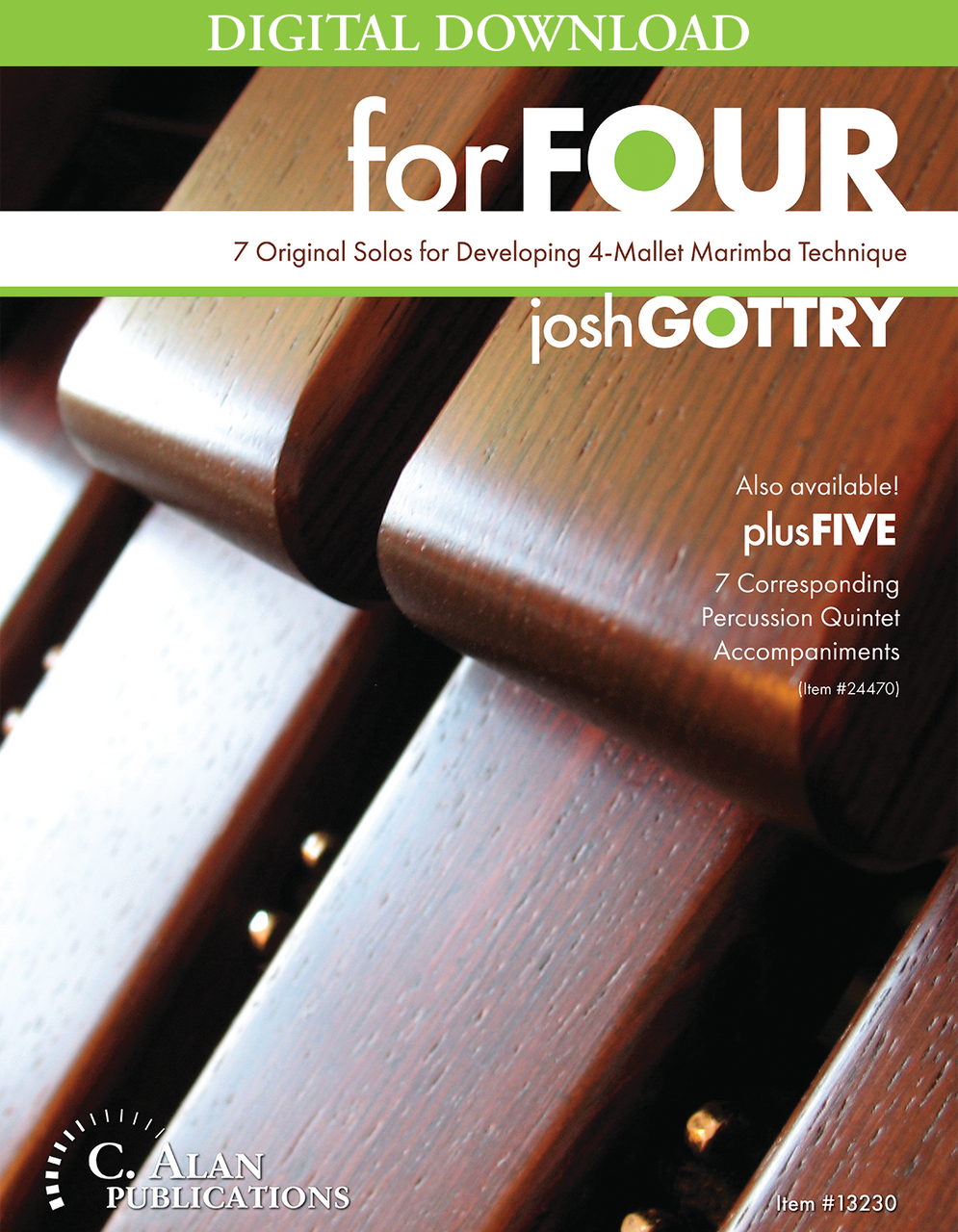 Josh Gottry's For Four is loaded with excellent solos and exercises for the advancing mallet player. For each solo in this wonderful collection, there is a full page of exercises meant for technical development (concentrating on the strokes being used in the piece) and piece preparation (concentrating on specific patterns found in the piece). This is a great method book for those just learning how to play with 4 mallets. You will find that For Four really fills a gap in the early 4-mallet marimba literature.