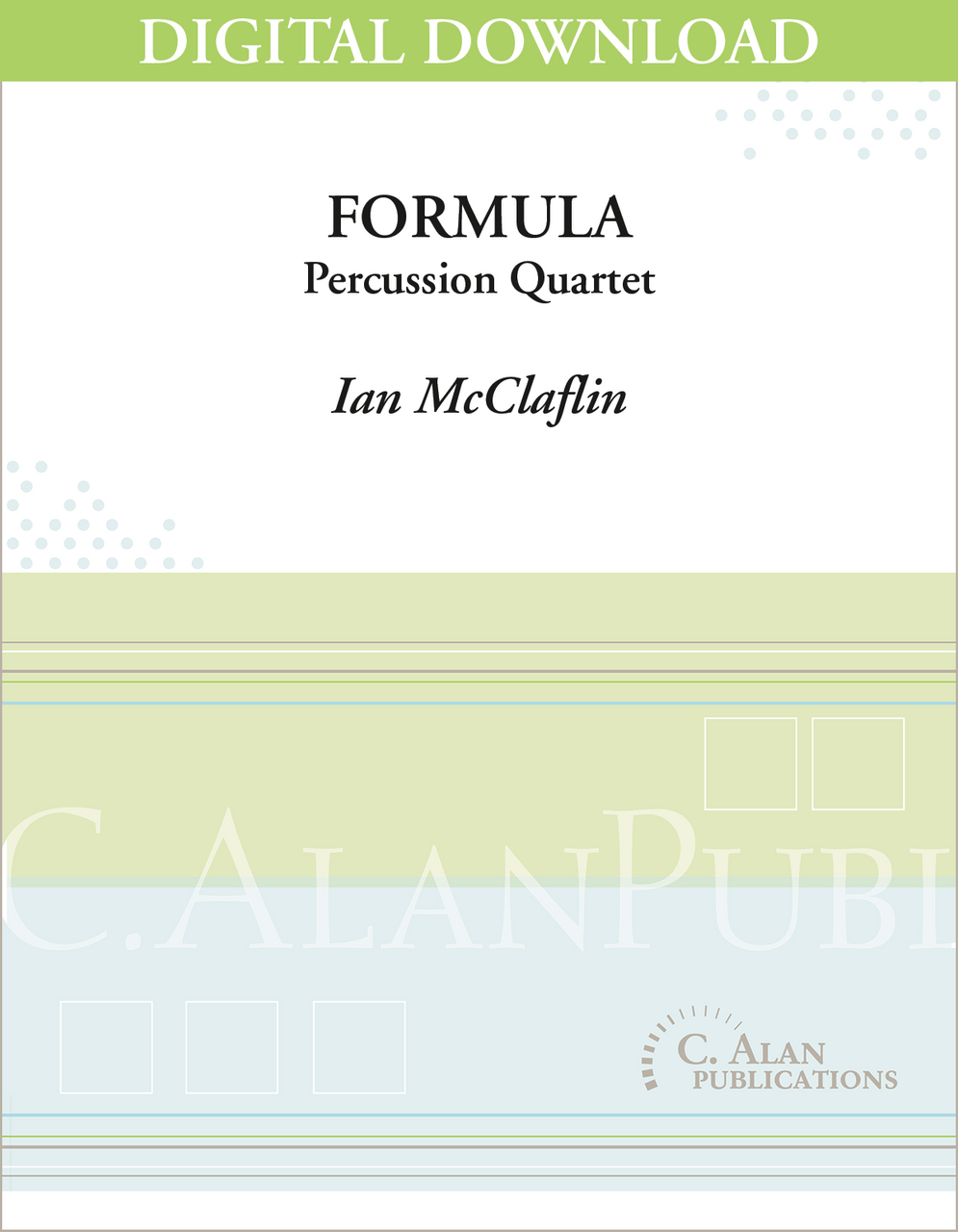 Formula is a percussion quartet that will keep the audience entertained as well as providing a challenge to its players. The piece incorporates four different styles of playing that will showcase the range of its performers and is a great programming choice for recitals along with small ensemble contests.