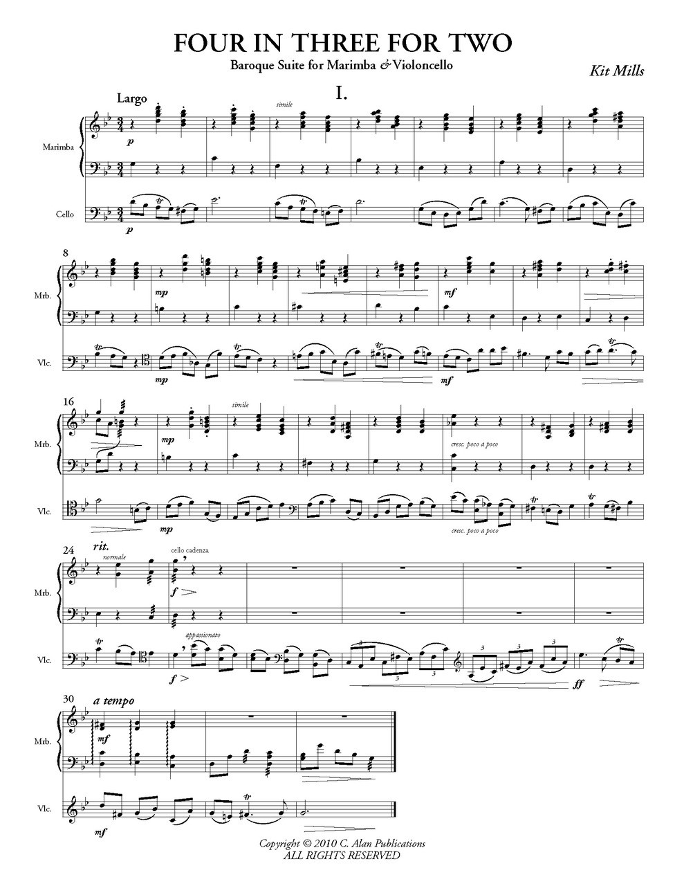 Genre: Duet for Cello & Marimba | # of Players: 2