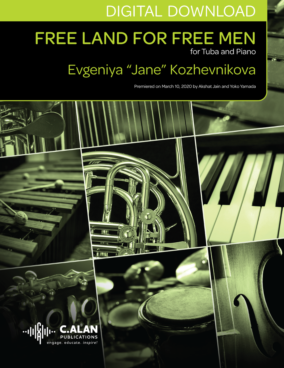 Free Land for Free Men is a joyful and energetic piece for tuba and piano inspired by an image of a highlander living independently in the mountains. It will make a great selection for a recital.