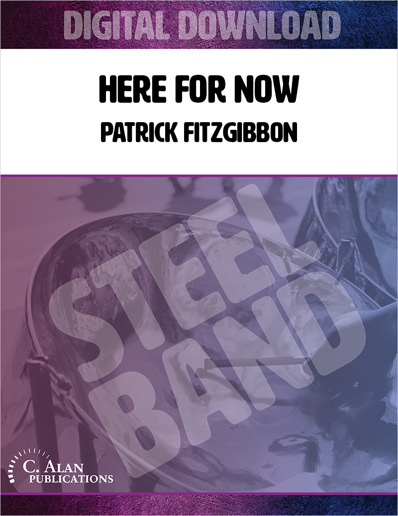 Here for Now combines elements of samba and jazz along with terrain familiar to steel band composition; virtuosic passages in the lead pans, melodic variations in the lower voices, and plenty of syncopated unison ensemble moments.