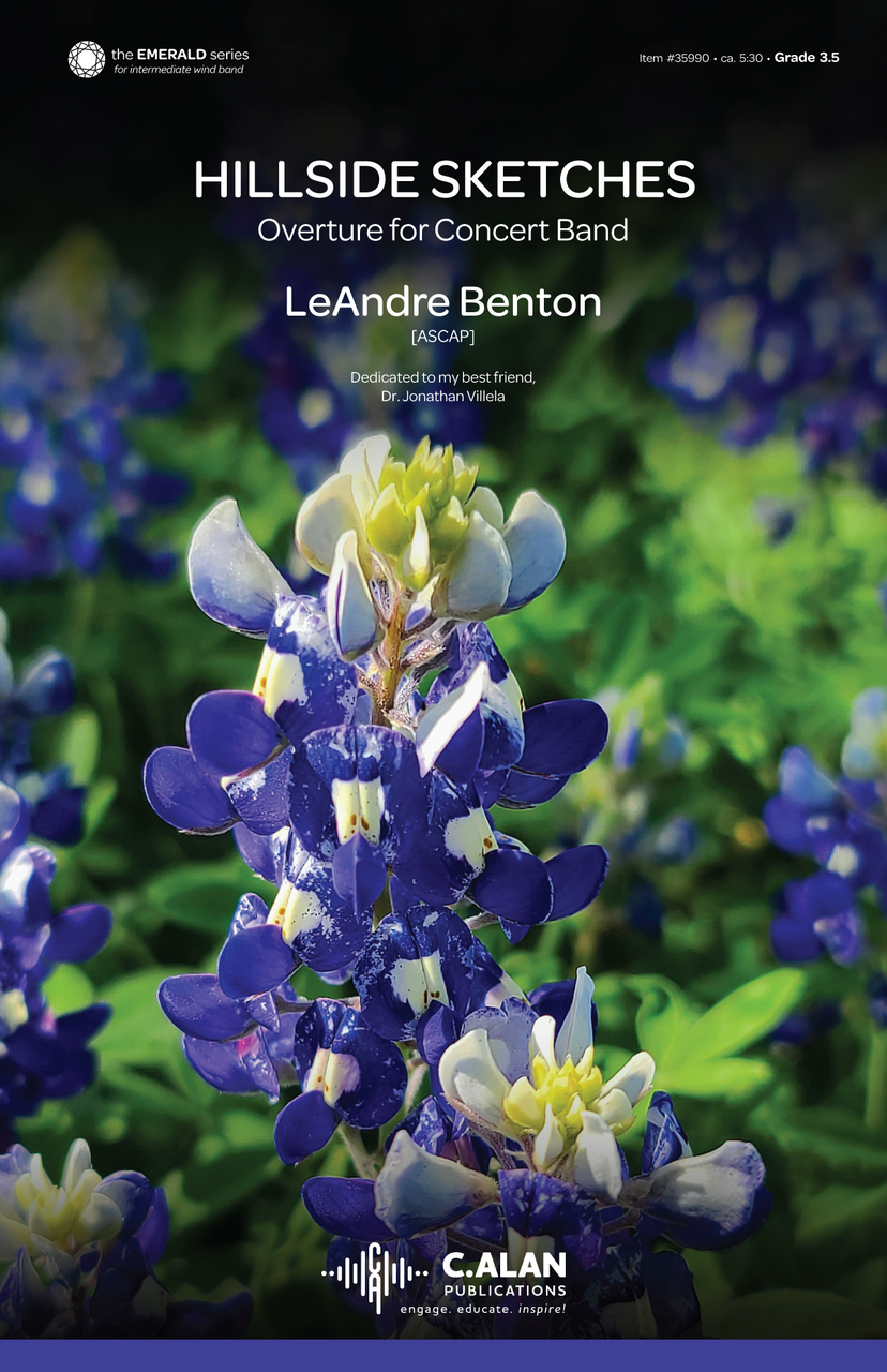 Inspired by the beauty of Texas Hill Country and the spirit of lasting friendship, Hillside Sketches (Overture) is an exciting Grade 3.5 work that features bold brass fanfares, sweeping woodwind lines, and sparkling percussion writing, all woven together with lyrical themes and rhythmic drive. With its blend of adventure, warmth, and musical color, it evokes the timeless festival style reminiscent of James Barnes or Alfred Reed—making it a compelling choice for concert or contest performance.