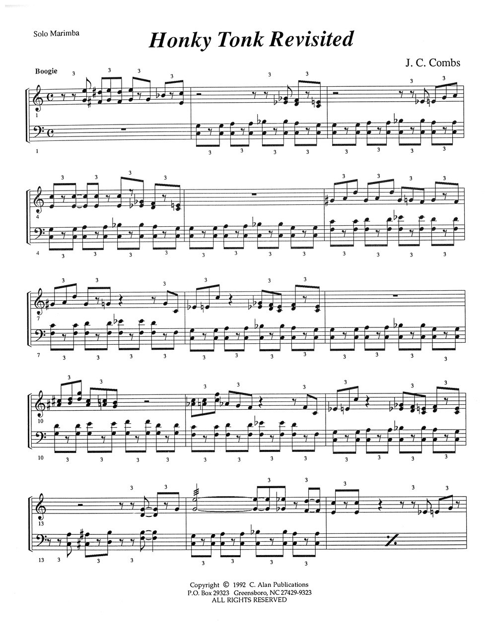 This 2-1/2 minute piece is a salute to the famous honky tonk piano artist “Meade Lux” Lewis. It is based on the blues scale, uses the standard 12-bar blues progression, and lends itself very well to improvisation. However, if you are uncomfortable improvising, the original solo is written in such a way that it sounds improvised.