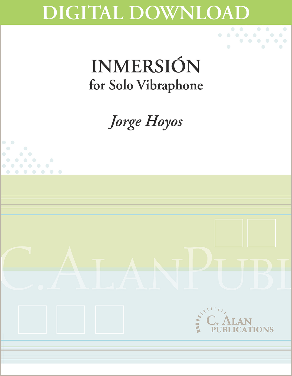 From its opening chords, Inmersión submerges the audience into the sonic world of the vibraphone. It is precisely the aim of the work to take advantage of the deep and beautiful sound of this instrument. From cascading scales to sustained clusters, Inmersión gives the impression of being in a peculiar environment, perhaps underwater, and with every following moment a new nuance of this unexplored realm is unveiled.