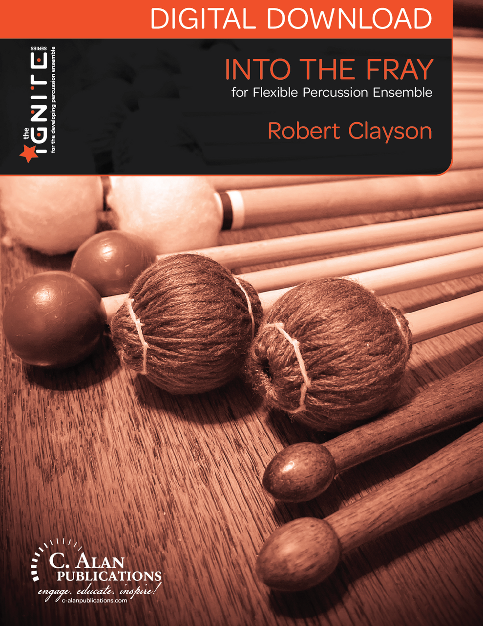 Into the Fray is a percussion ensemble with flexible instrumentation that is playable with as few as 4 players or as many as 13. It is a musical portrayal of someone getting prepared to face a significant challenge. The piece starts with a slow intense melody in the glockenspiel that makes its way throughout the entire ensemble. The piece is aggressive and is sure to get your students excited about playing percussion ensemble music!