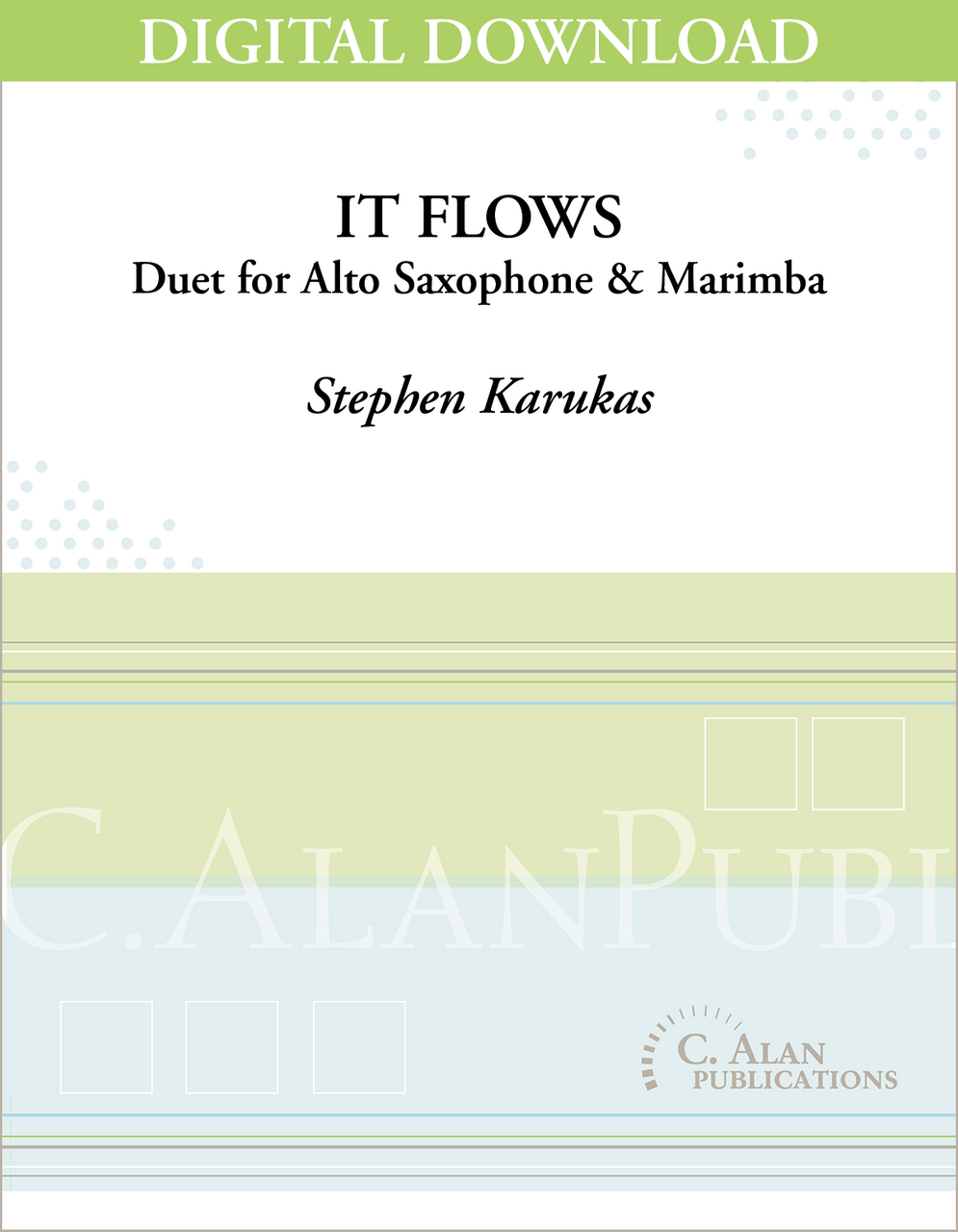 Expressively textural in one moment and relentlessly groovy in the next, It Flows is a challenging and varied work for marimba and alto saxophone that includes polyrhythmic textures, exciting hocketed lines, and soaring saxophone melodies. The constantly evolving harmony and texture keeps the piece fun for both performers and audience.