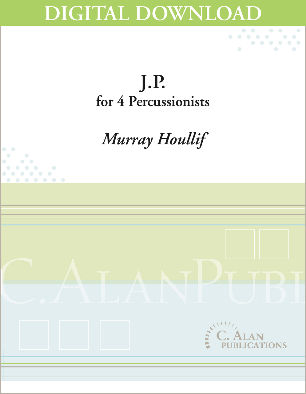 By using standard instrumentation, Houllif has created a composition in J.P. playable by a wide array of percussionists (from high school to professional). The rhythmic language features constantly changing meters. Each of the four parts is equally as challenging as the next. Perfect as a chamber piece on a recital or a showcase on a percussion ensemble concert.