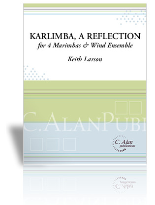 Karlimba, A Reflection is a showy, yet accessible, work for marimba quartet and wind ensemble (piano) that requires four expressive percussionists to pull it off. It features primarily 2-mallet playing, but two of the performers are required to play a couple of slower passages with four mallets.