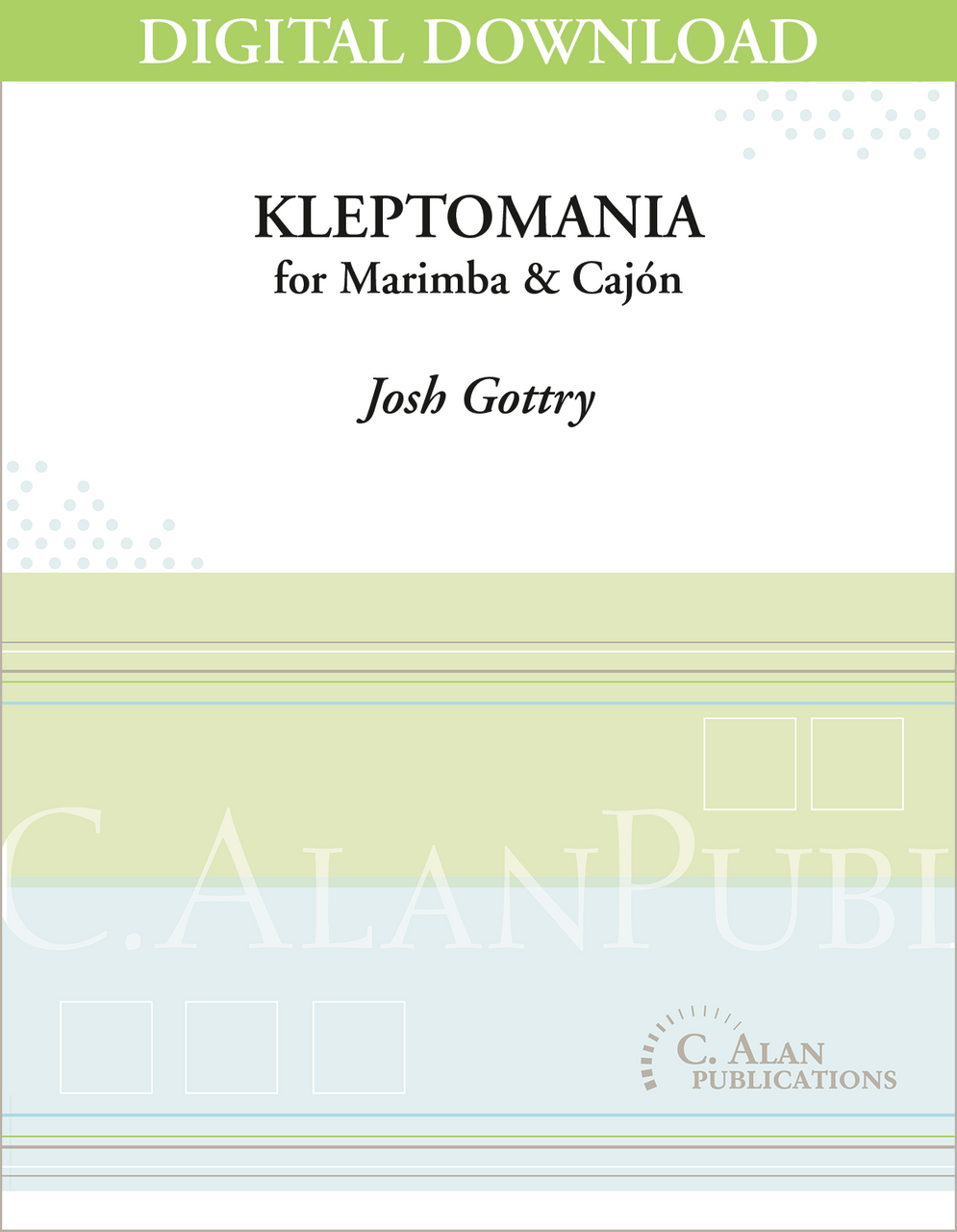 Kleptomania is defined as a recurrent urge to steal, typically without regard for need or profit. In music, stealing, or more often “borrowing,” is something we do regularly. We copy chord progressions, imitate riffs or licks, and develop new material from existing rhythmic ideas, etc. This duet for marimba and cajón is entirely derived from the blues scale (a very commonly used collection of pitches, particularly in jazz) based on two different roots: F and C. Because the source material is intentionally limited to those two scales, the piece continuously returns to its own melodic ideas for further exploitation, essentially stealing from itself. The two instruments, one melodic and one rhythmic, work in tandem to navigate these recurring and mutating ideas that weave through numerous feels and time signatures.