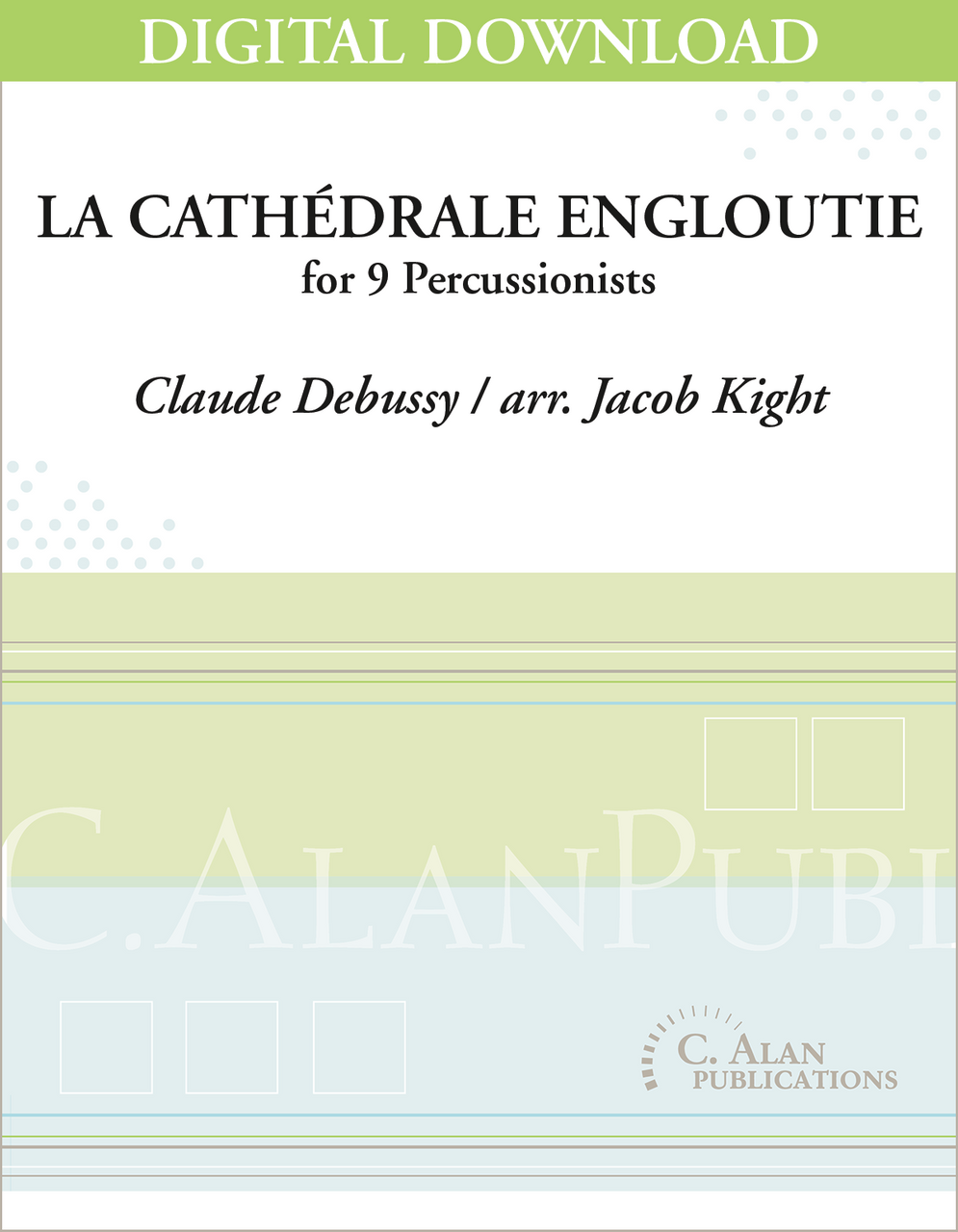 This arrangement of one of Debussy's most well-known works utilizes nine percussionists to represent the cathedral’s mystical image. The chosen instrumentation expands upon the spectrum of colors which embodies the sounds of the singing priests, a passionate organ, and tolling bells among others.