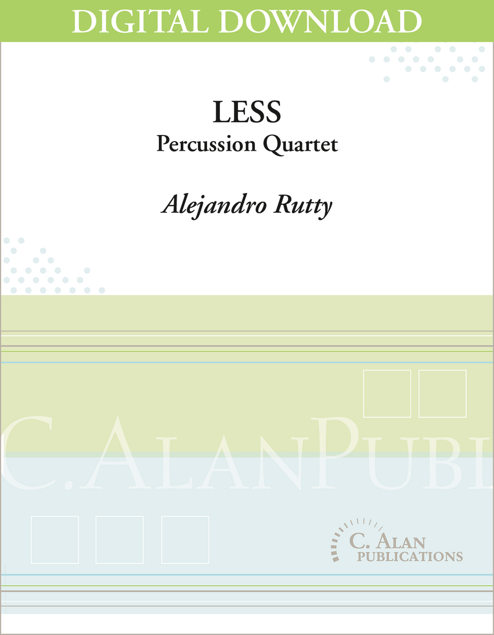Hypnotic, lyrical and rhythmically meticulous, Less for percussion quartet makes for a singular experience for performers and audiences. The combination of melodic dreamy textures, a scrupulous rhythmic spine, and a delicate sound world offers multiple angles and opportunities for subtle and expressive music-making.