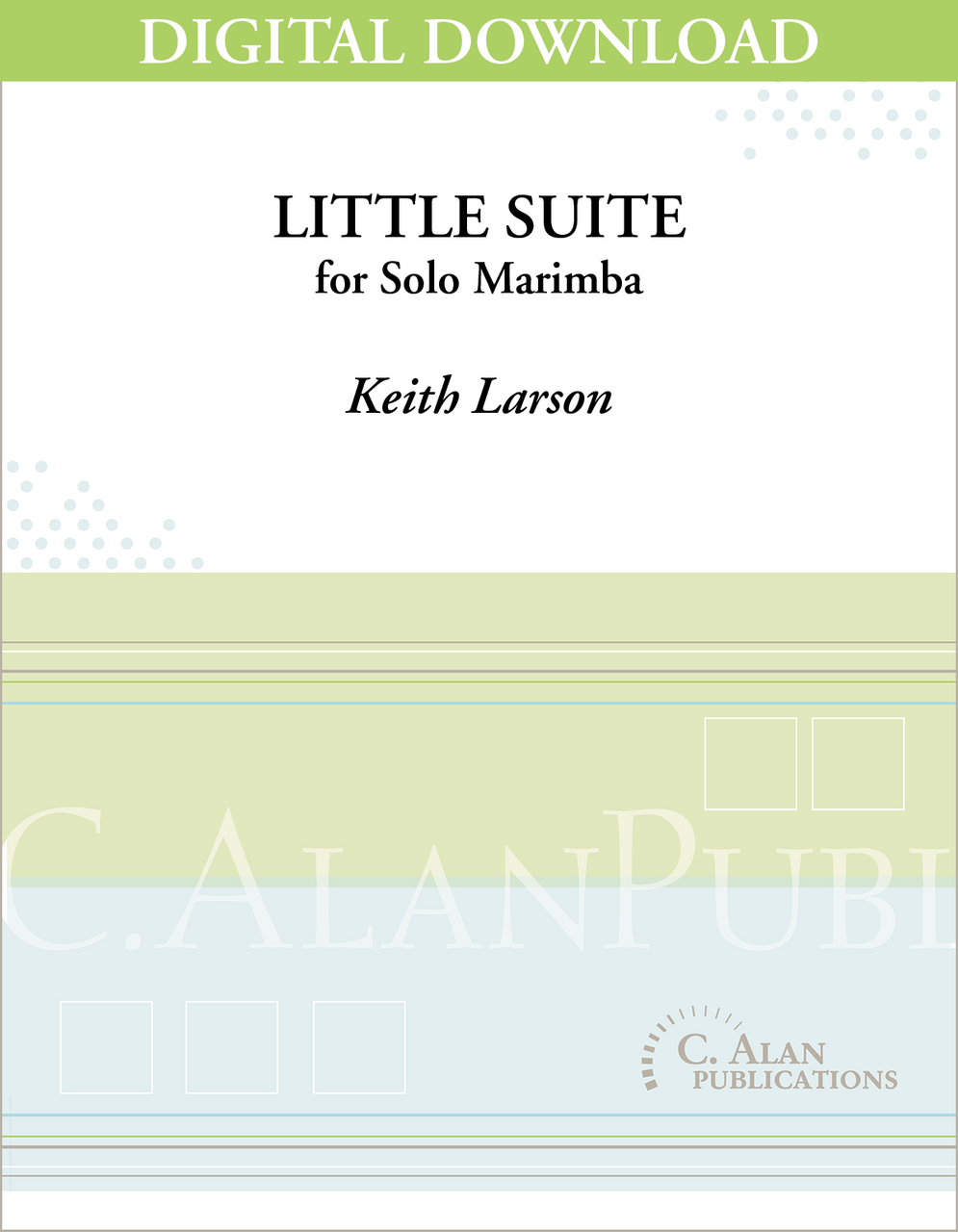 Little Suite for Solo Marimba is a three-movement work of contrasting styles. The first is a 7/8 dance, the second is a flowing arpeggio based movement, and the third is a fiery fast movement. The piece is effective for contest or recital.