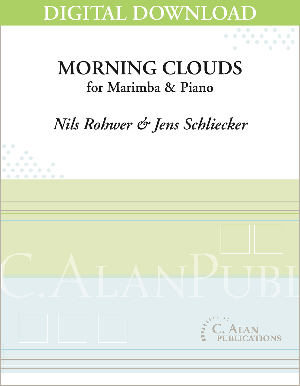 Morning Clouds is a fantastic duet full of energy and warm harmonies. The piano and marimba share the stage, each with its own solos and cadenza like features. Impressionistic in style with hints of jazz and even pop.
