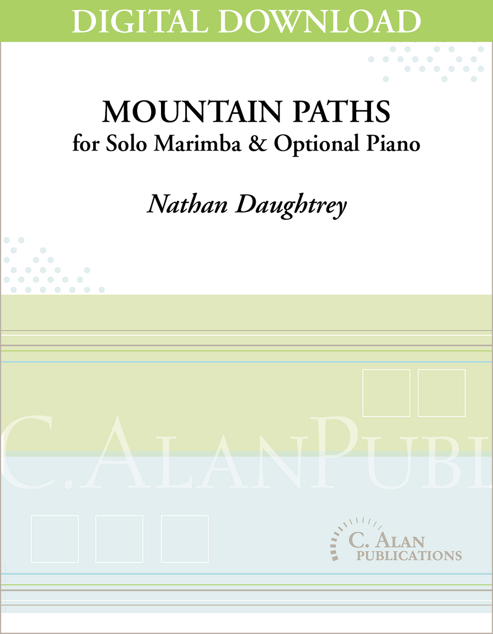 This two-movement piece for marimba is meant to be used toward the beginning of a student’s two-mallet education. An optional piano accompaniment is also provided, giving the student the opportunity to perform with an accompanist (foreshadowing concerto literature in the future). The first movement, To The Summit, is rolled and slowly meanders from the low end of the instrument to the upper end, when it reaches the climax (or “summit”). The second movement, Downward Spiral, is fast-paced with combinations of eighths and sixteenths and a little syncopation. There is a brief recapitulation of the “summit” theme from the first movement before sliding down the remainder of the mountain.