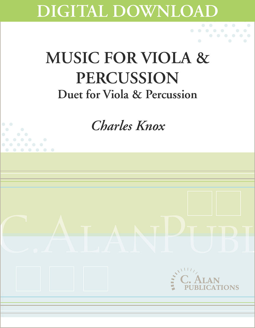 Music for Viola and Percussion was written for two of Charles Knox's former students, Amy Leventhal, violist, and Scott Douglas, percussionist, who are now professional recitalists. They premiered this work on their Atlanta-based "Primrose Series" of concerts in the Spring of 1998.