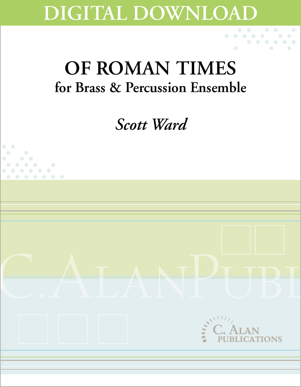 Of Roman Times is a composition for Brass and Percussion which is inspired by Ancient Rome and the vast Empire which was built by its leaders. The composition begins with an energetic fanfare, reflecting the majestic nature of the Roman Empire and its powerful leaders. The opening segues into a section (letter A) that takes the listener on a walk through the city of Rome, taking time to admire all the magnificent architecture. A slower reflective section (letter E) follows, which depicts the soldiers saying goodbye to their families before going off to war, not certain if they would return. The last section of the work is an energetic ride through the fields of battle as the Roman Army surges forward and conquers everything in its path. The Roman Empire was full of energy, determination, and life, and this composition attempts to capture that energy with a work that is exciting for both the listener and the performer.