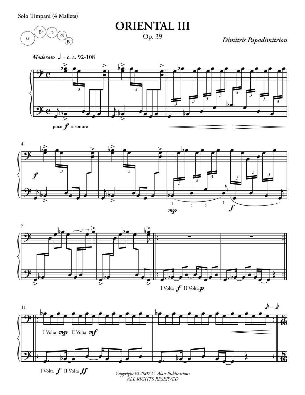 How often do you get to play timpani with four mallets? Here's your chance! Oriental III is a work of bravura for 5 timpani that gives the soloist the opportunity to improvise before coming to a close.