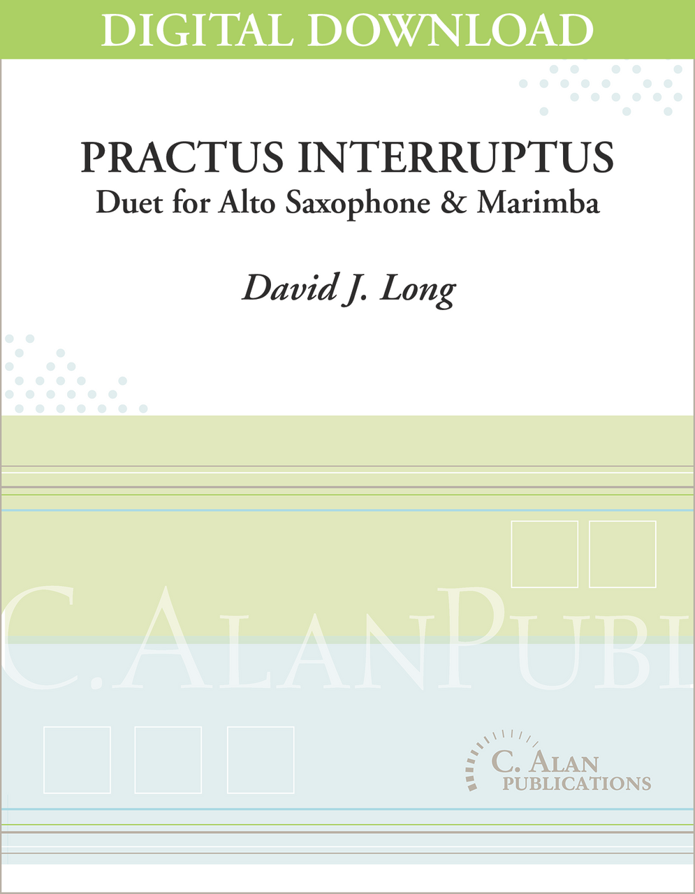 Practus Interruptus is a unique theatrical showpiece for alto saxophone and one percussionist. The scenario is a run-through rehearsal in which the saxophonist keeps messing up. When the percussionist finally gets fed up, he starts playing a swing pattern on hand drums and chords in the vibraphone. The saxophone joins in with a bluesy solo over top. The middle section features improvisation in a 12-bar blues. After they finish “playing around,” the two players finish the composition they started rehearsing in the first place. A lot of fun to play and watch!