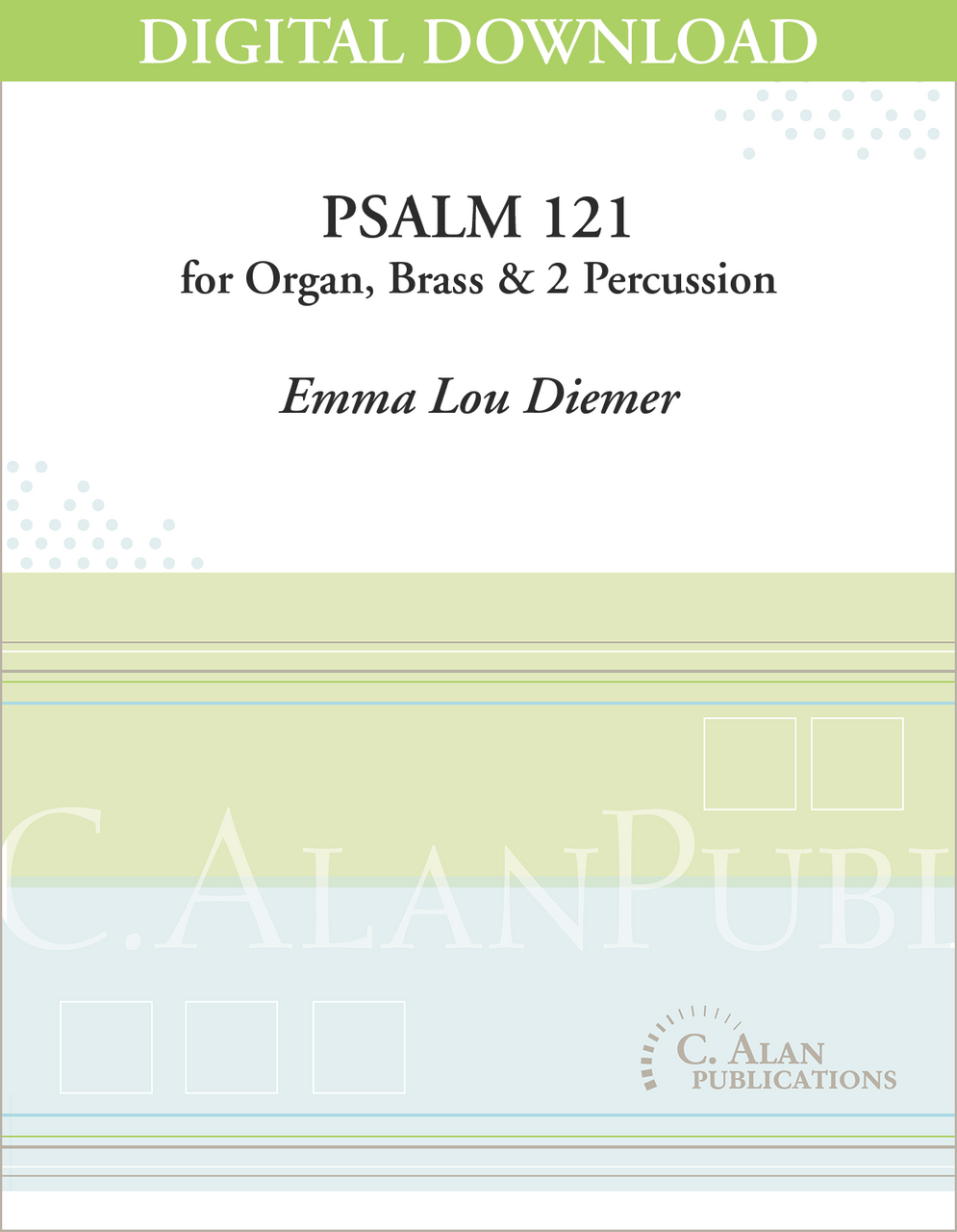 Emma Lou Diemer's dramatic Psalm 121 features sweeping scales played by the organ, stately fanfares in the brass and effective swells in the timpani and suspended cymbal. A perfect showcase for the contemporary organist.