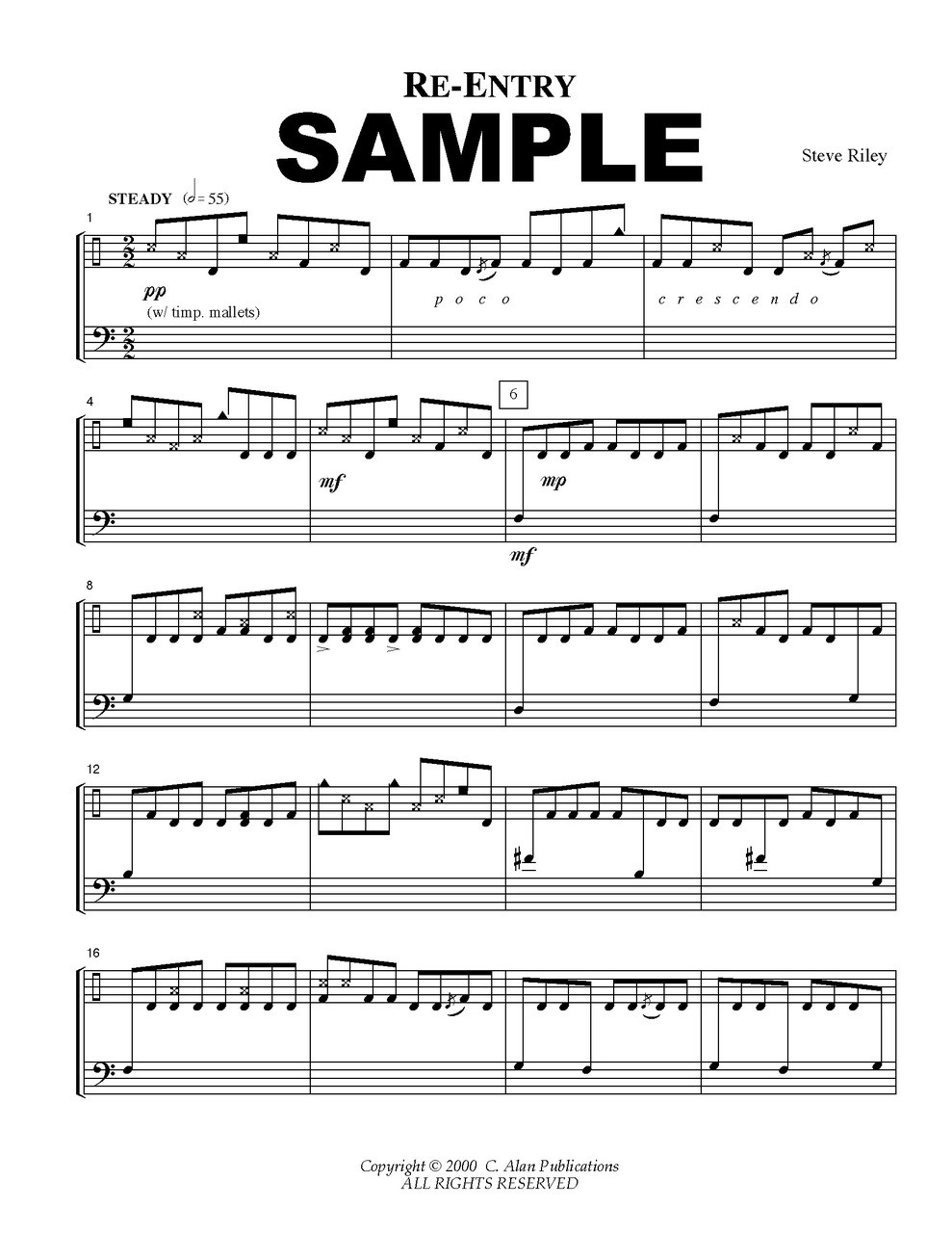 An entertaining and challenging solo for the serious percussionist. Melodious themes and driving rhythms punctuate this work and make it a treat for performer and audience.