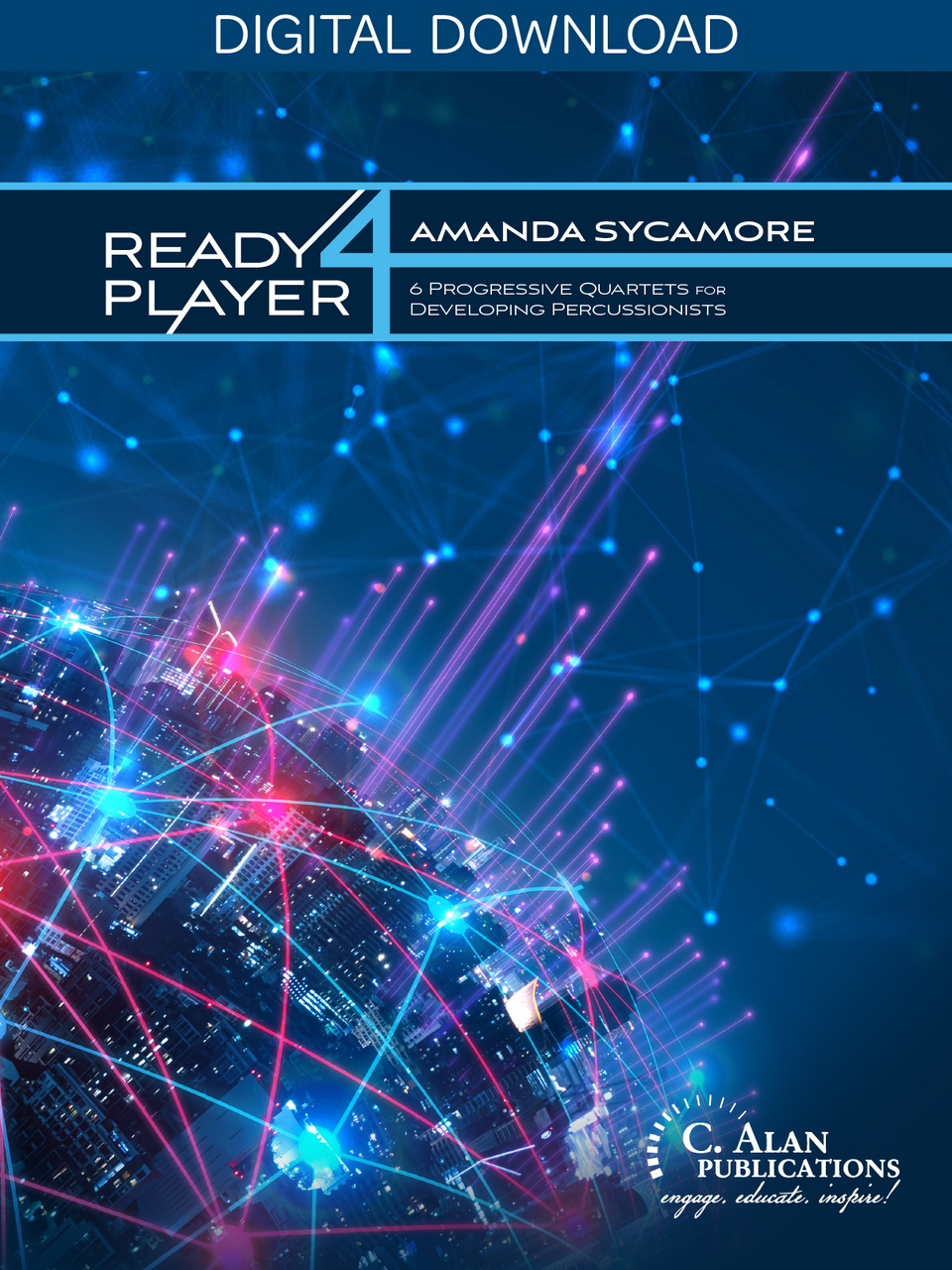 Ready Player 4 is a collection of quartets designed to elevate the playing level of your percussionists by introducing students to ensemble playing as well as several new techniques, like thumb rolls, crush buzzes, muted triangle, etc. that they might not be exposed to in the concert band setting. Six quartets at three levels, battery and mixed instrumentation, allow for a variety of instruments, configuration, and skill.