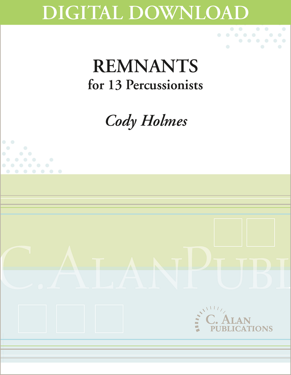 Remnants is a challenging work for percussion orchestra that explores the many timbres achievable in a conventional large ensemble setup. With many musical layers to this piece, there is the constant intention of maintaining growth and decay, leading to full, driving moments as well as delicate piano playing that draws the listener’s ear in. The melodic intention of the work was to create an array of short and fragmented melodic figures that overlap yet fit together diatonically and harmonically, creating moments of familiarity and earning the appropriate title, Remnants.