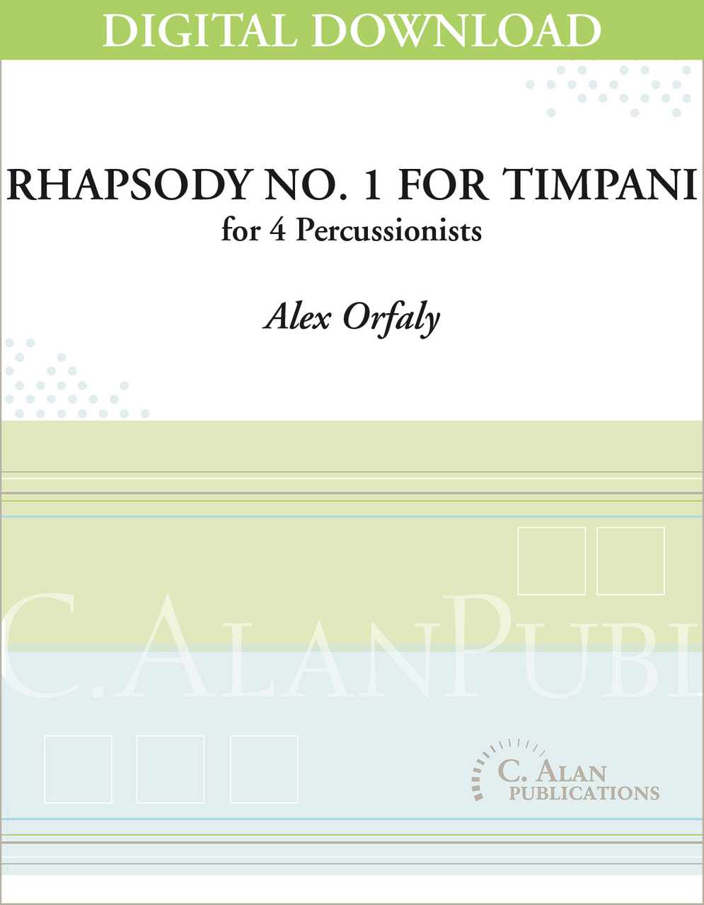 Rhapsody No. 1 was written in the spring of 2001 for my good friend and colleague Matthew Bassett. The version here is a slightly modified version as it was originally premiered in 2001. It takes an irregular (thus a Rhapsody) form of many intervals of slow and fast sections with a middle slow section as a resting point. A tonality was sought by employing many of the same pitches from the timpani tunings into the mallet percussion parts. There is much dialog between the solo part and the percussion parts. A great deal of the time, the solo part sits atop the other parts, but also at times is required to function as part of the ensemble. Different colors are achieved on the timpani by using such specialty mallets such as blasticks and maraca sticks. - Alex Orfaly